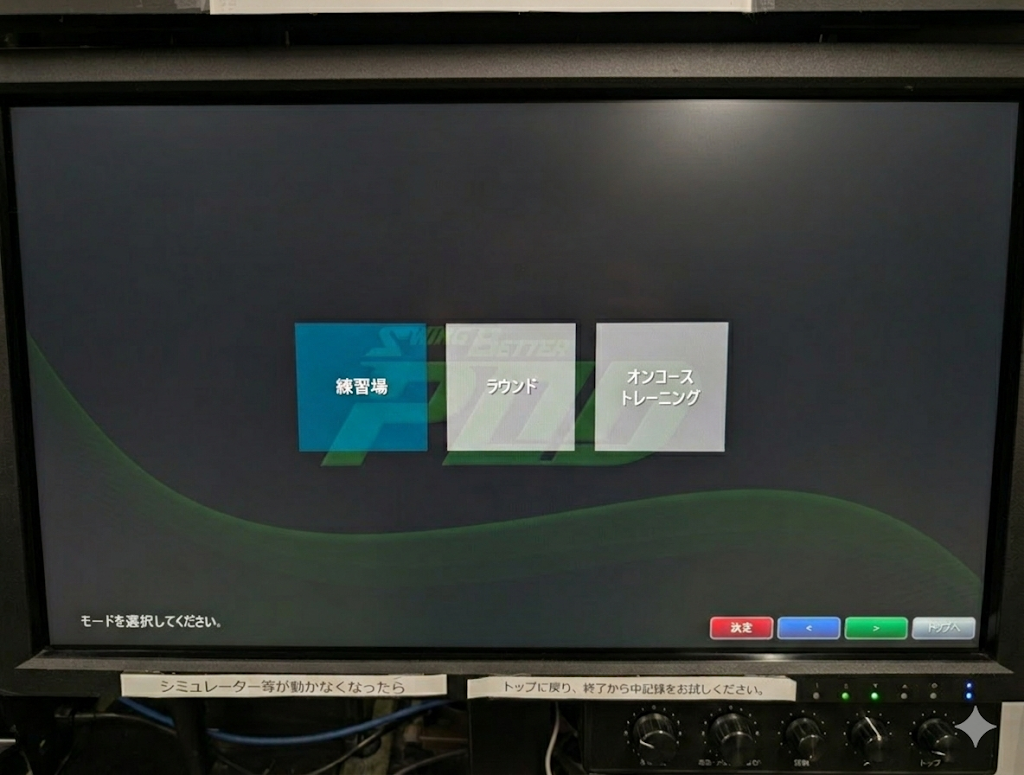 →いわゆるシミュレーションゴルフ、シミュレーションラウンドです。コースを選択し、プレーホール数、ティグラウンドなどを選択して、ラウンドします。